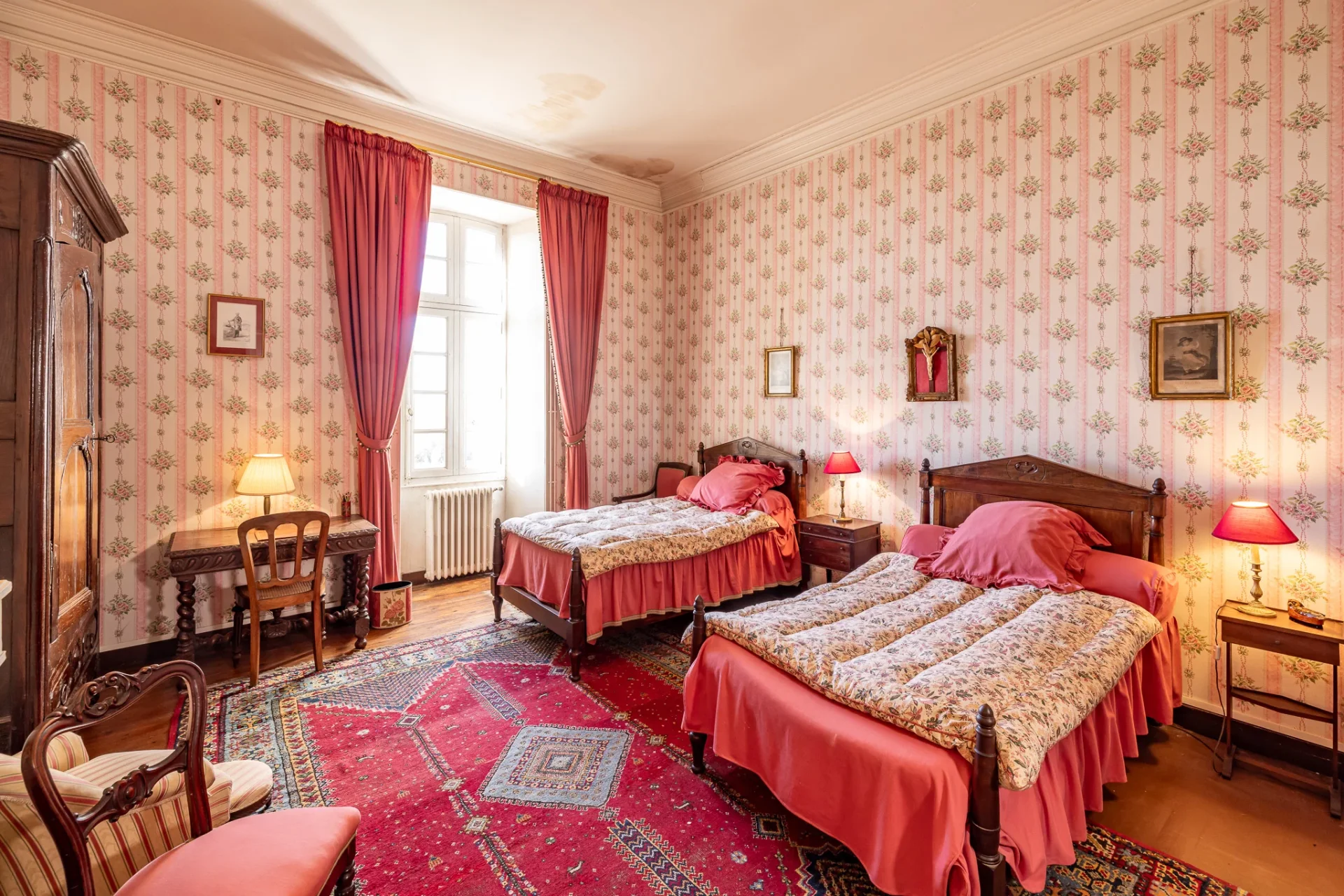 Le corps principal du château, inscrit à l’ISMH depuis 1996, se compose de 30 pièces réparties sur trois niveaux, avec une charpente en coque de navire inversée et un escalier à vis. Le rez-de chaussée s’organise autour des deux salons, d’une bibliothèque et d’une grande salle à manger tandis que l’étage s’organise lui autour de 8 chambres. La cour d’honneur, ouverte sur les communs et un ancien chai, mène à une piscine avec pool house et à un court de tennis. À quelques centaines de mètres, une maison indépendante complète l’ensemble. Le domaine bénéficie d’un environnement préservé, entre vignobles et forêts, tout en étant proche des écoles, commerces, golf 18 trous, centre équestre et gare TGV.