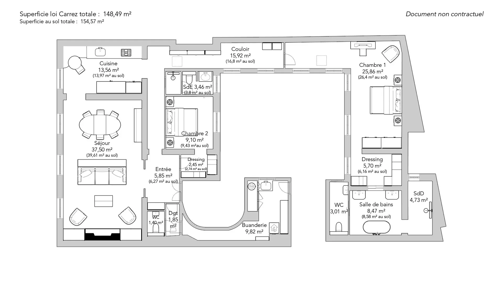 | 1x Buanderie | 9.82 m² | |