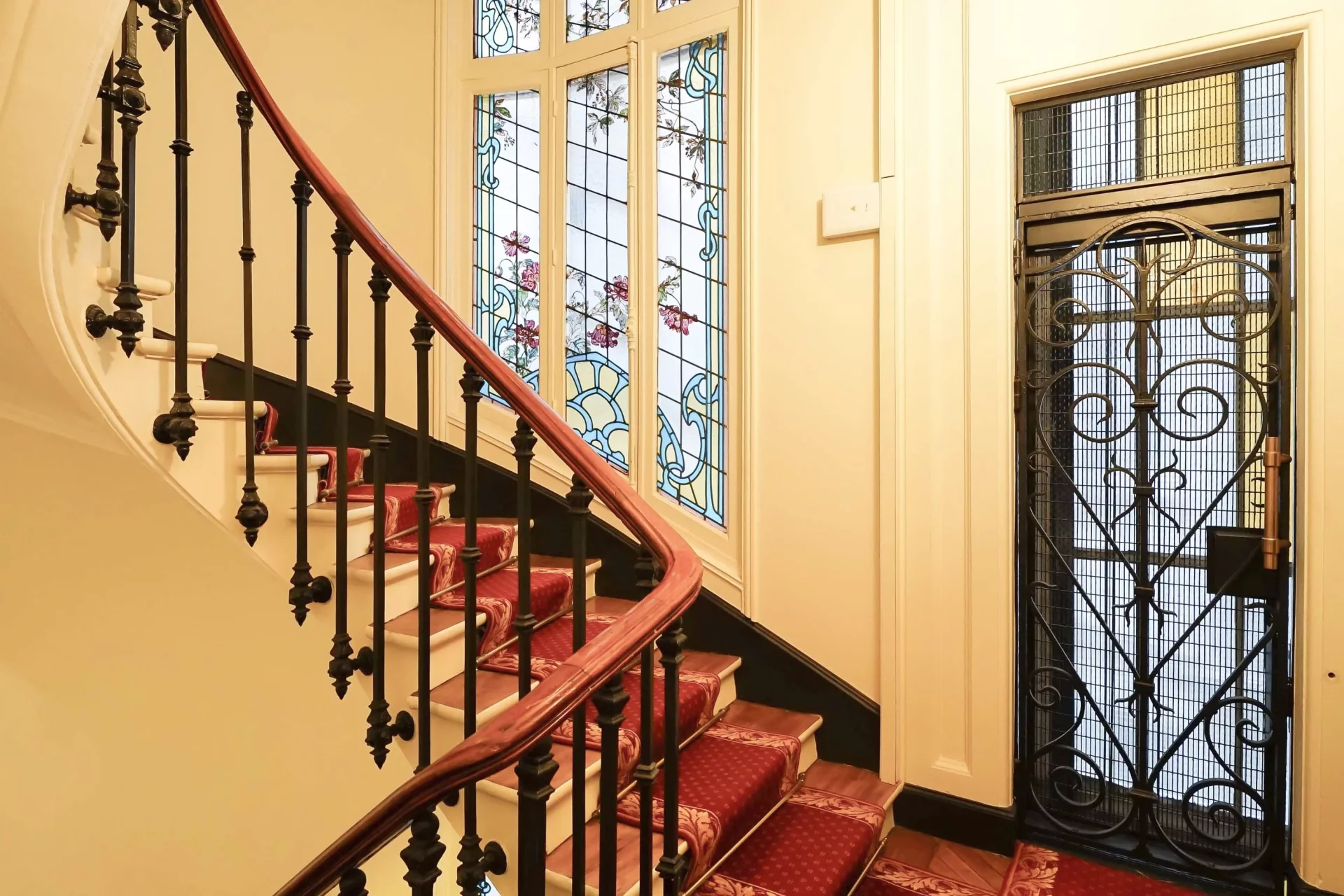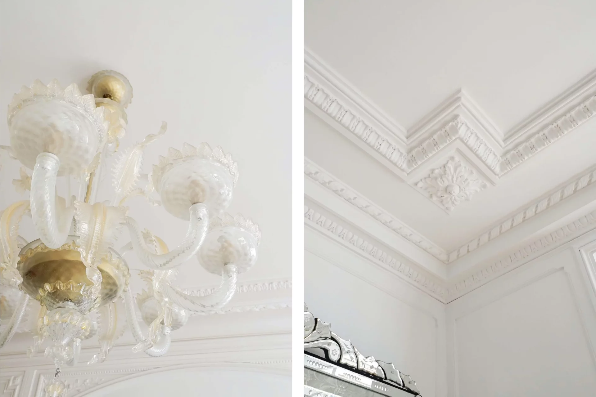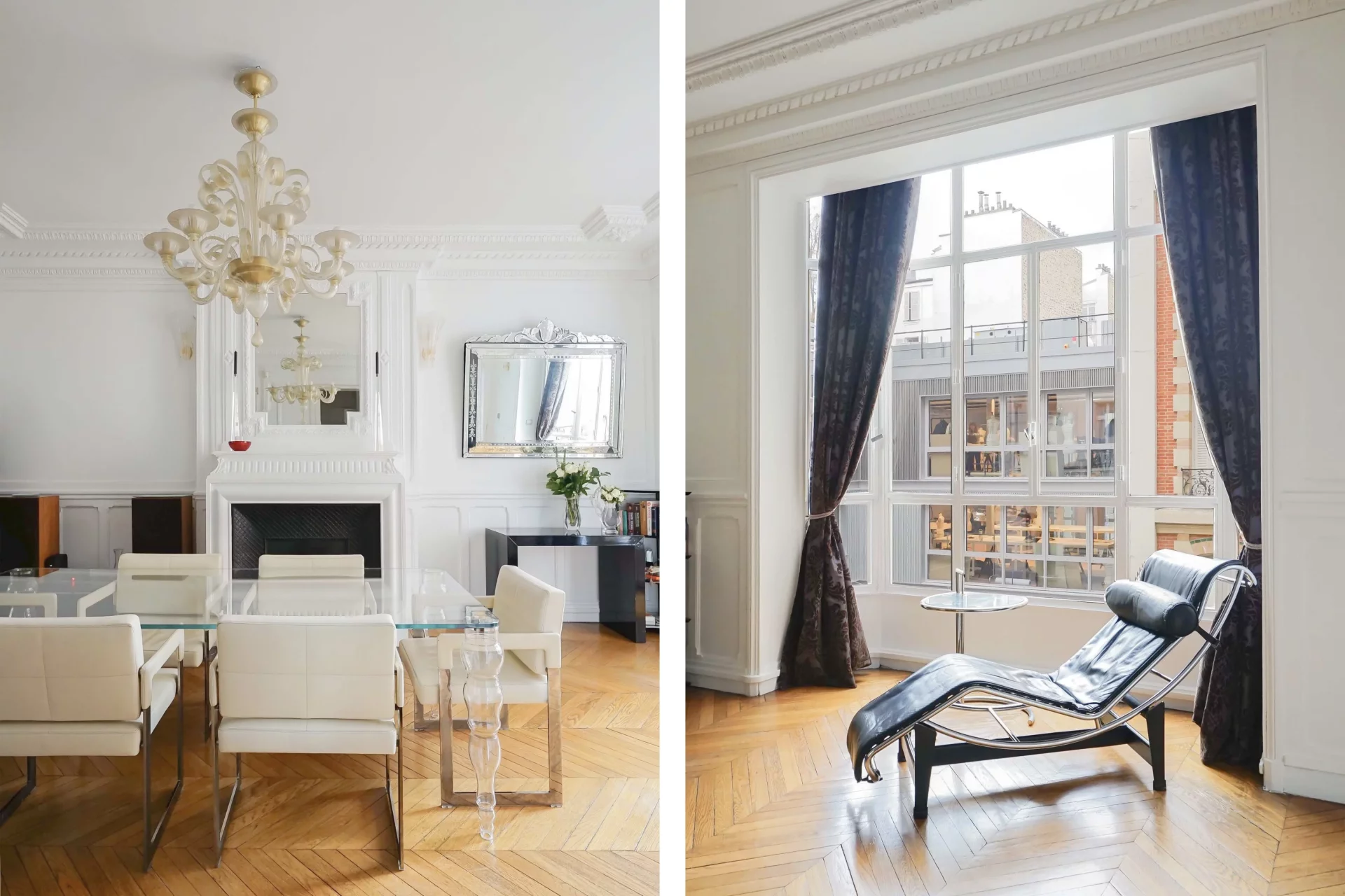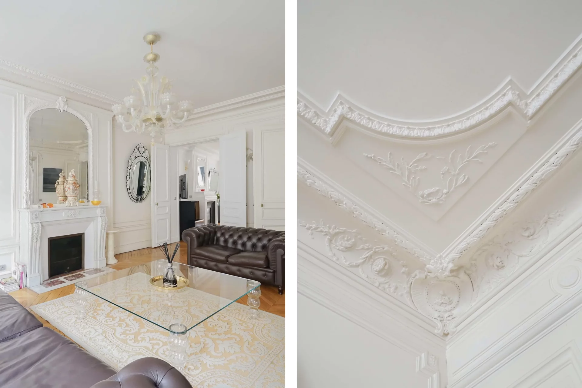 Les éléments haussmanniens d’origine ont été préservés, avec un parquet massif en point de Hongrie, des moulures, des cheminées et des portes vitrées anciennes.