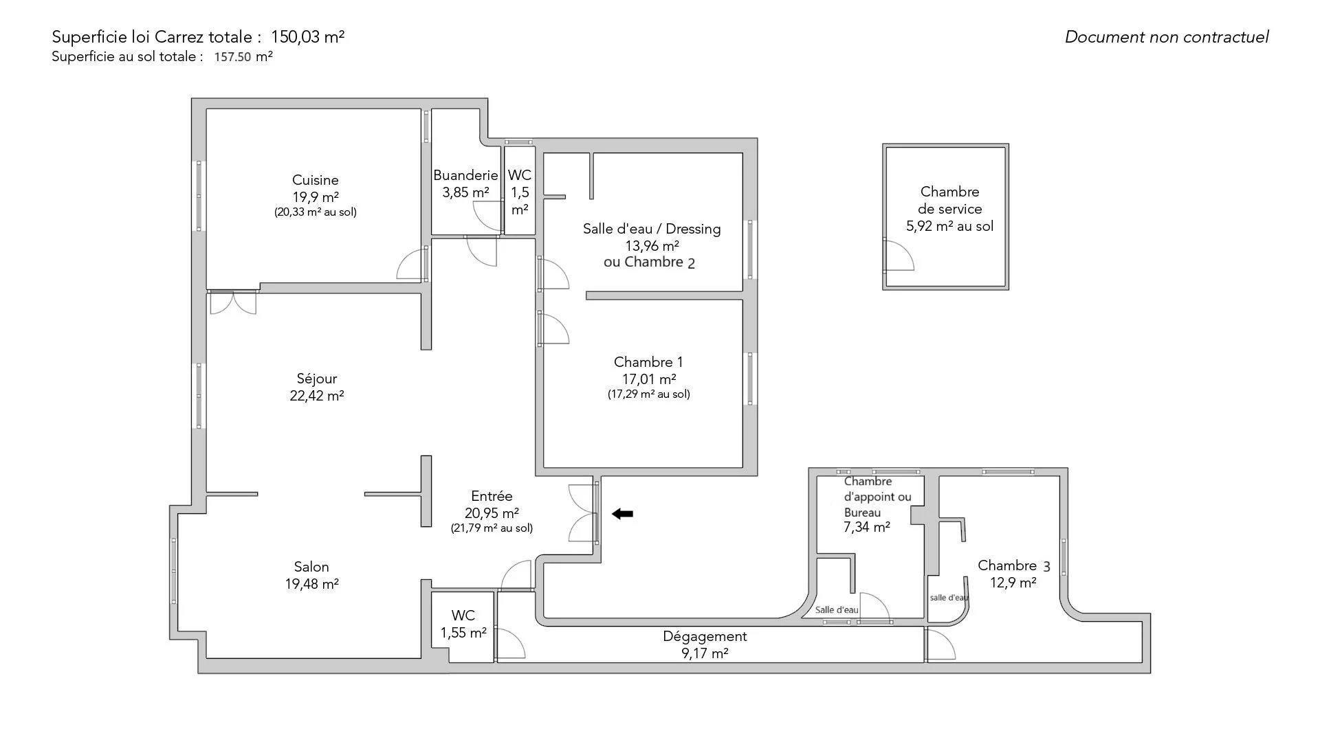 | 1x Chambre de service | 5.92 m² |