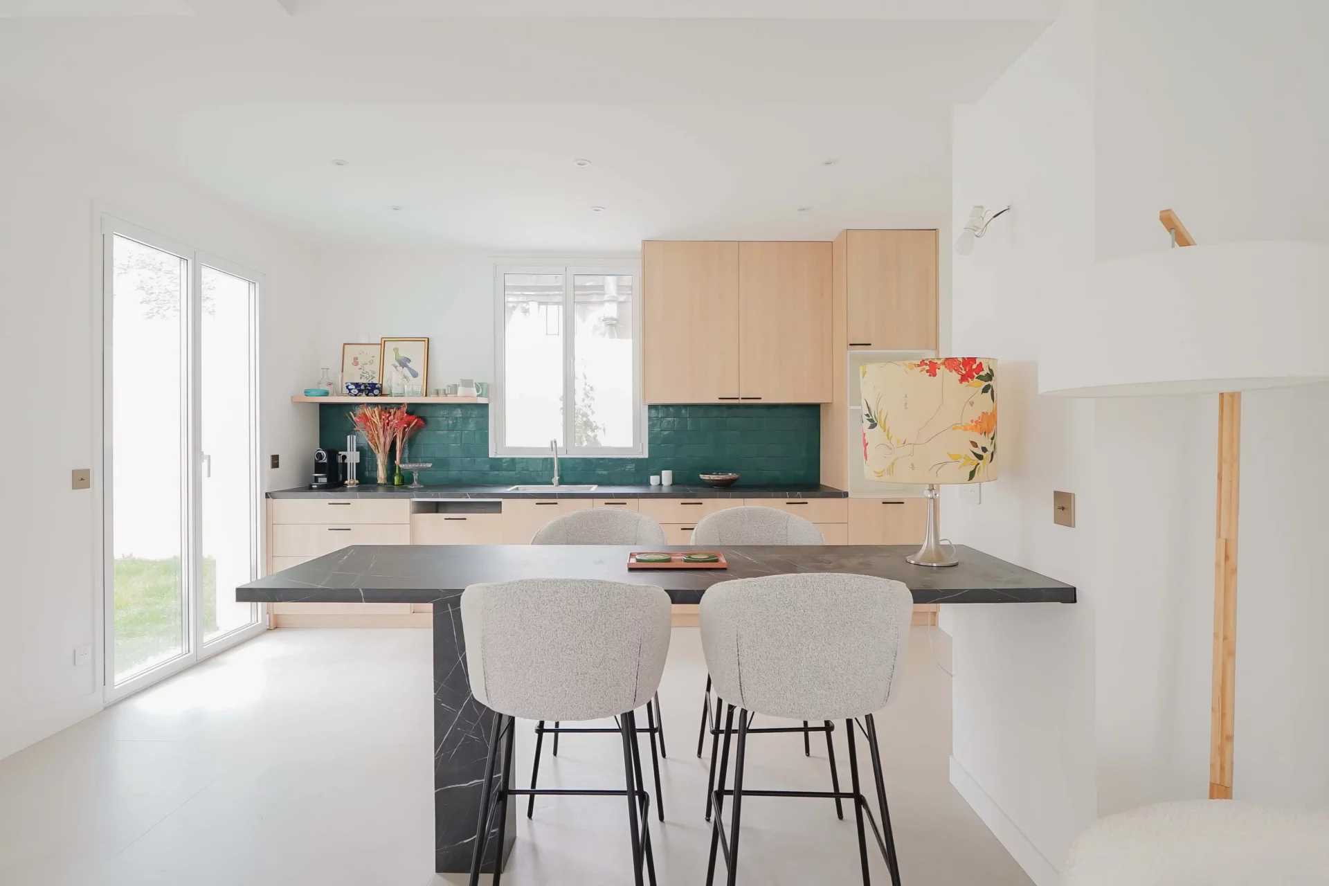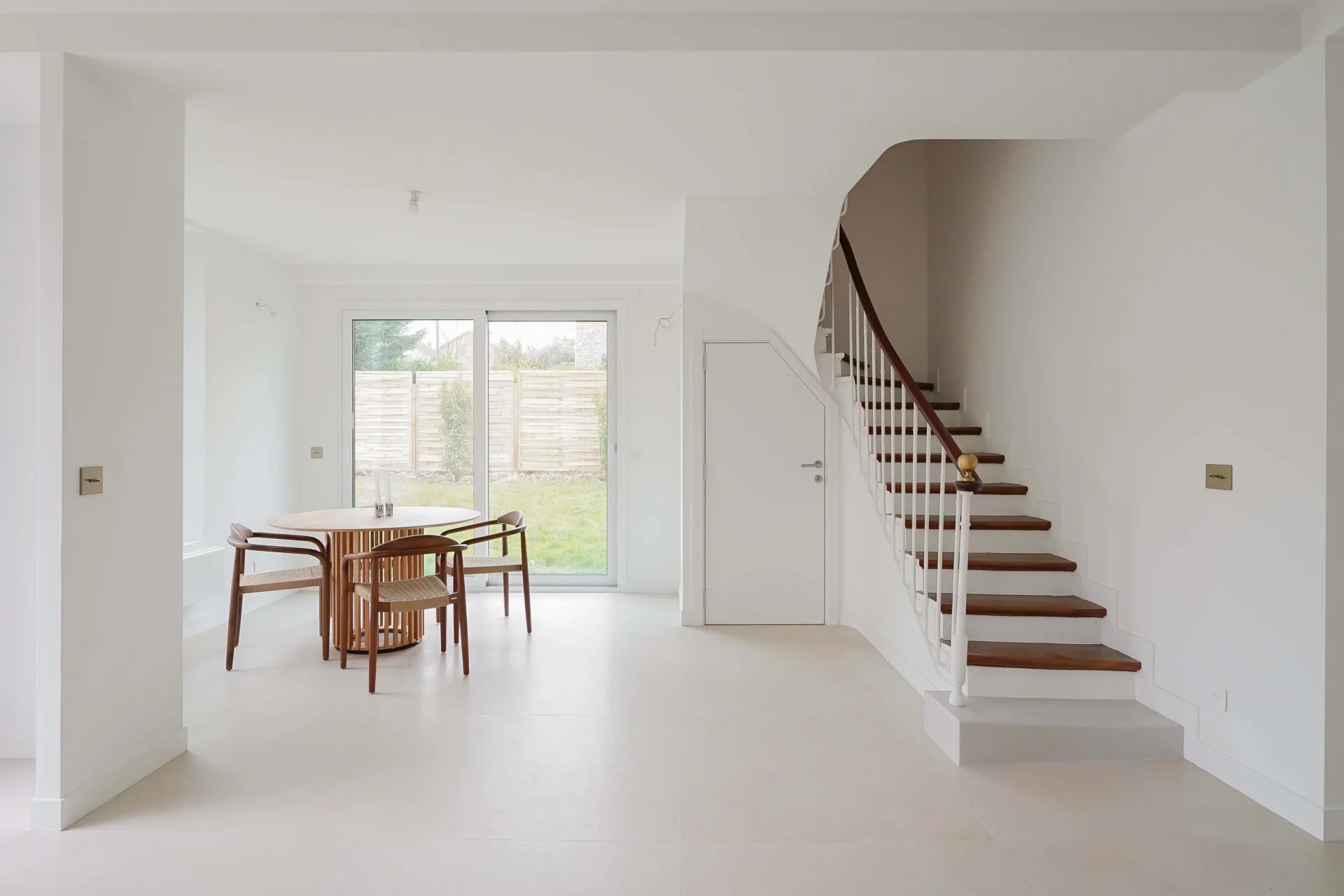 Bénéficiant de sa propre entrée et d’un stationnement privatif, elle s’ouvre sur un très beau jardin intime et bien exposé. Le rez-de-chaussée accueille une vaste pièce de vie lumineuse avec salon et cuisine ouverte donnant directement sur le jardin.