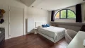 À l’étage, un escalier architectural mène à trois chambres, un bureau, une salle de bain et un toilette.