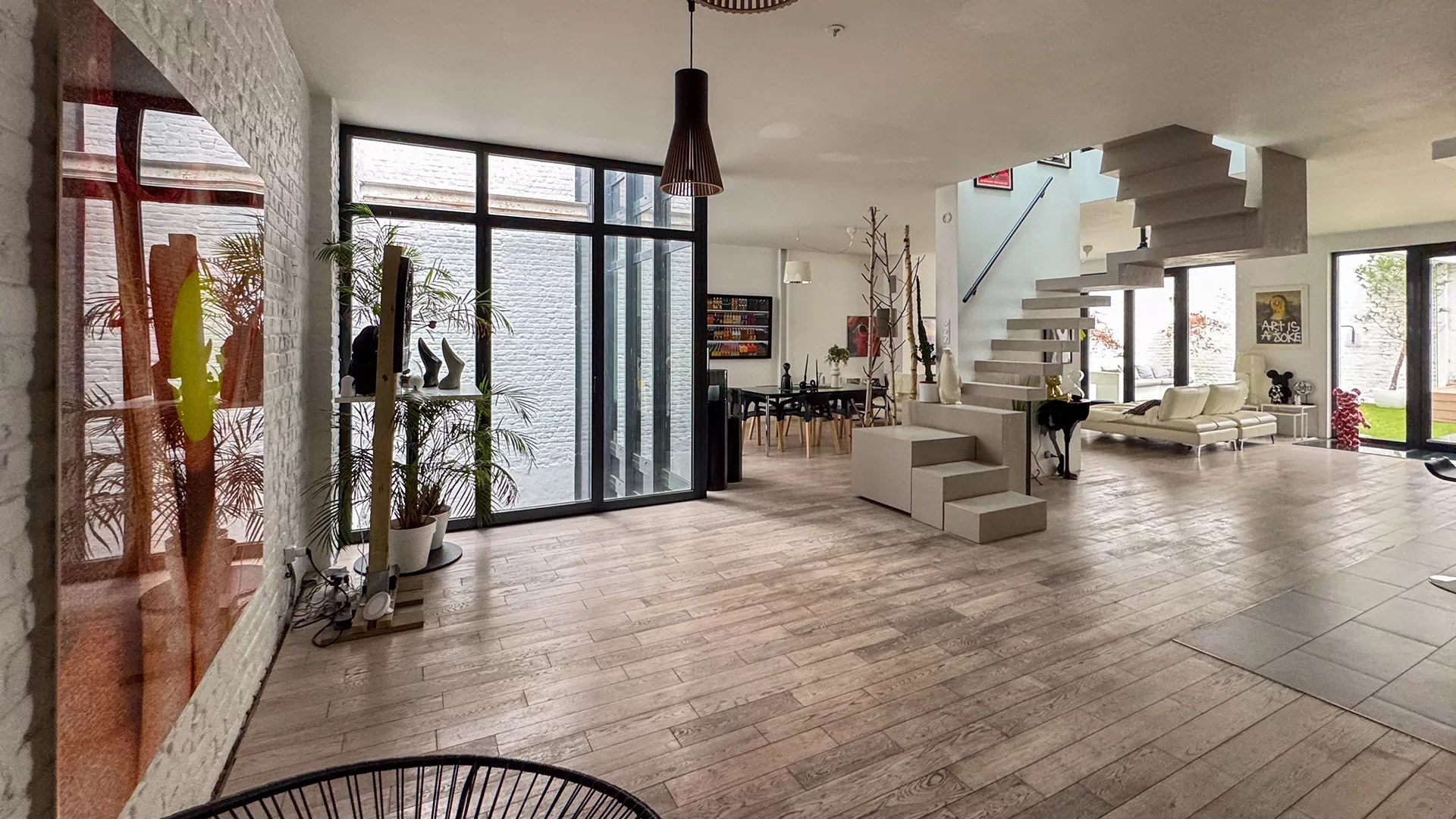 Situé à proximité immédiate du centre-ville, des commerces, écoles, transports et axes rapides, ce loft offre un mode de vie rare alliant calme, design et confort contemporain.