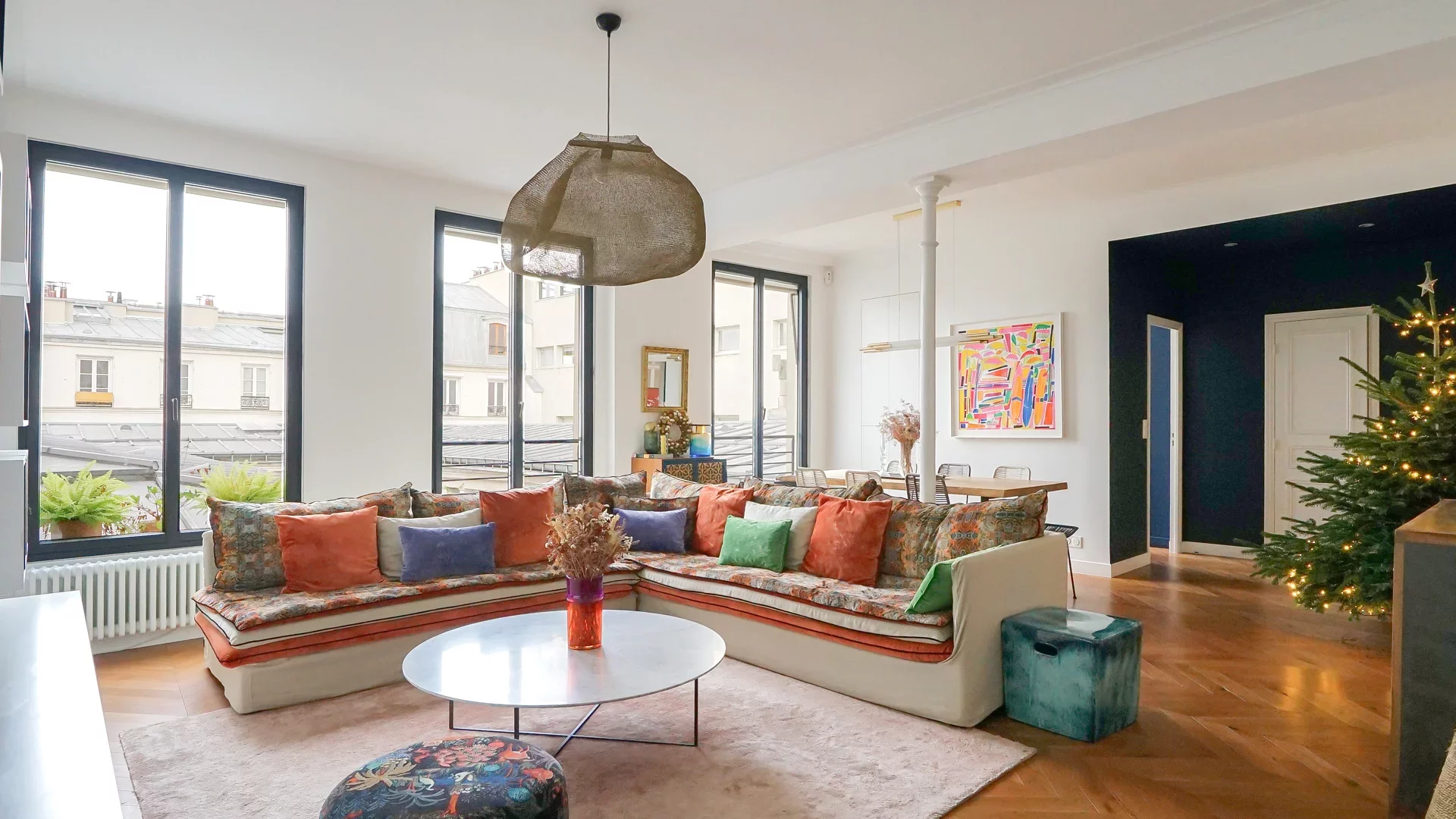 Dans un immeuble entièrement réhabilité, au troisième étage par escaliers, un appartement en parfait état et au calme absolu de 101,7m² loi Carrez. Il se compose d'une entrée, d'une double réception exposée à l'ouest, d'une cuisine semi ouverte entièrement équipée, d'une première chambre parentale avec dressing et salle de douche, de deux autres chambres avec rangements, d'une salle de bains complète et d'un toilette invités. Cet appartement à l'emplacement extrêmement central bénéficie d'un plan parfait et compact, d'une belle luminosité et de beaux volumes. En annexe: une cave.