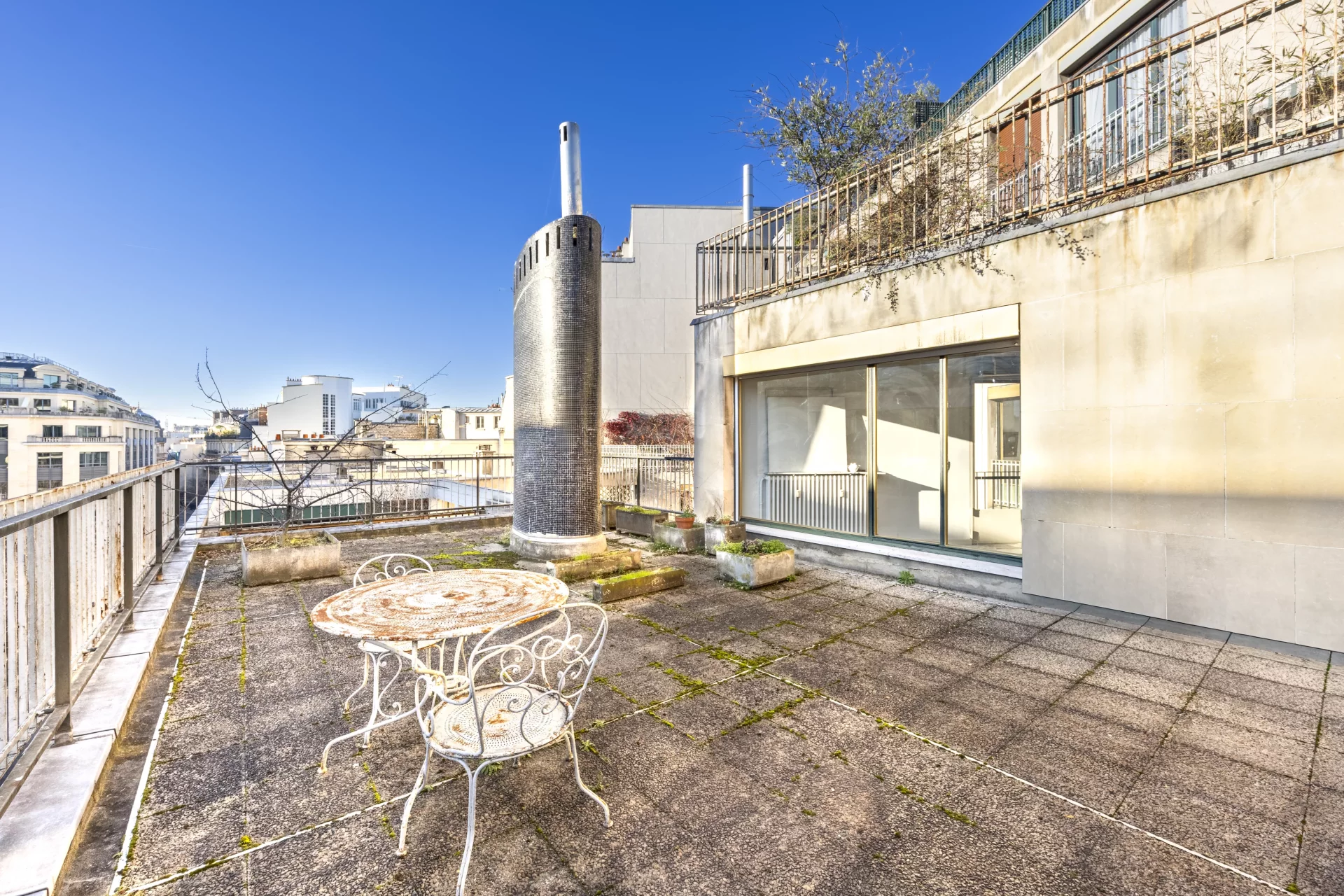 À deux pas du Parc Monceau, appartement avec terrasse à rénover.