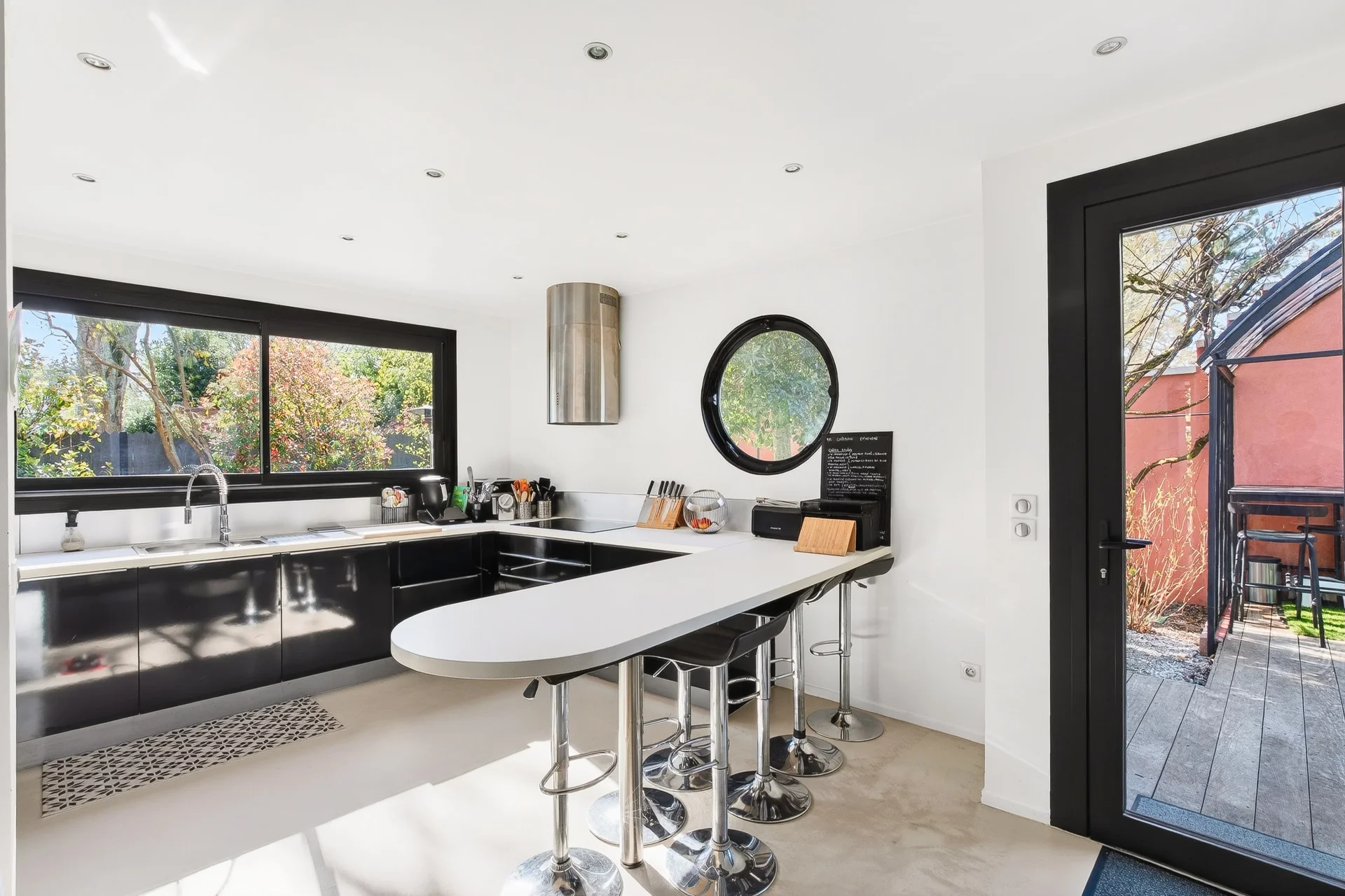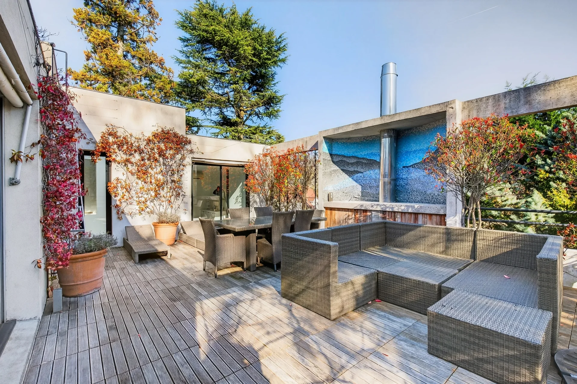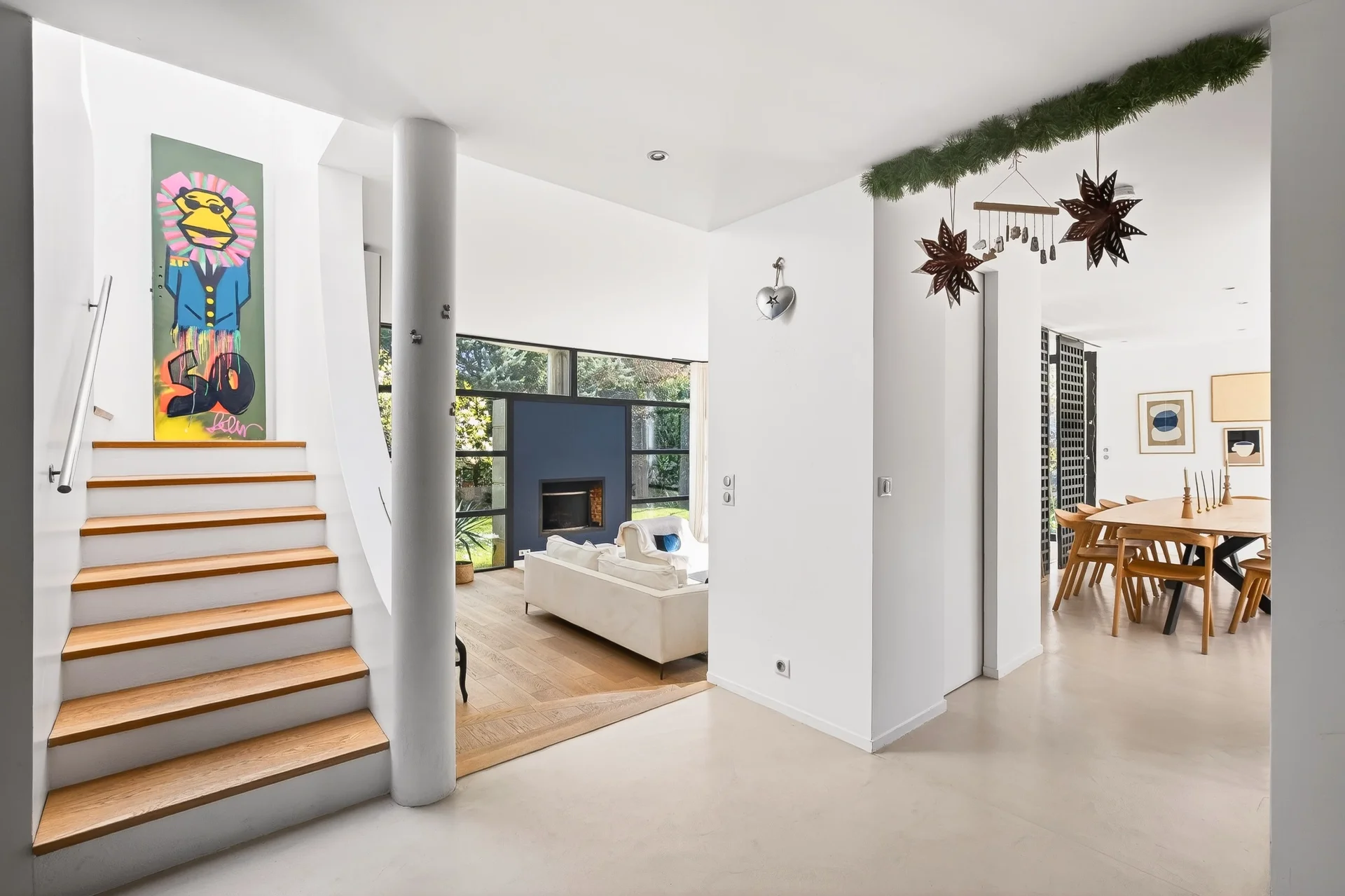 Nichée au fond d’une impasse privée et sécurisée, cette élégante maison d’architecte, en parfait état, développe une surface de 262 m² répartie sur deux niveaux, complétée par un vaste sous-sol. Elle est édifiée sur une parcelle paysagée de 732 m².