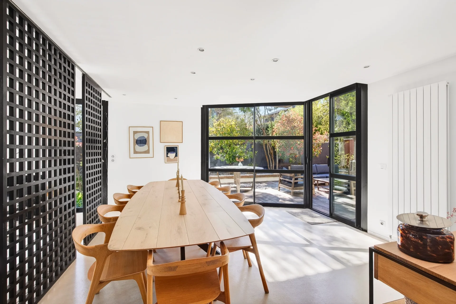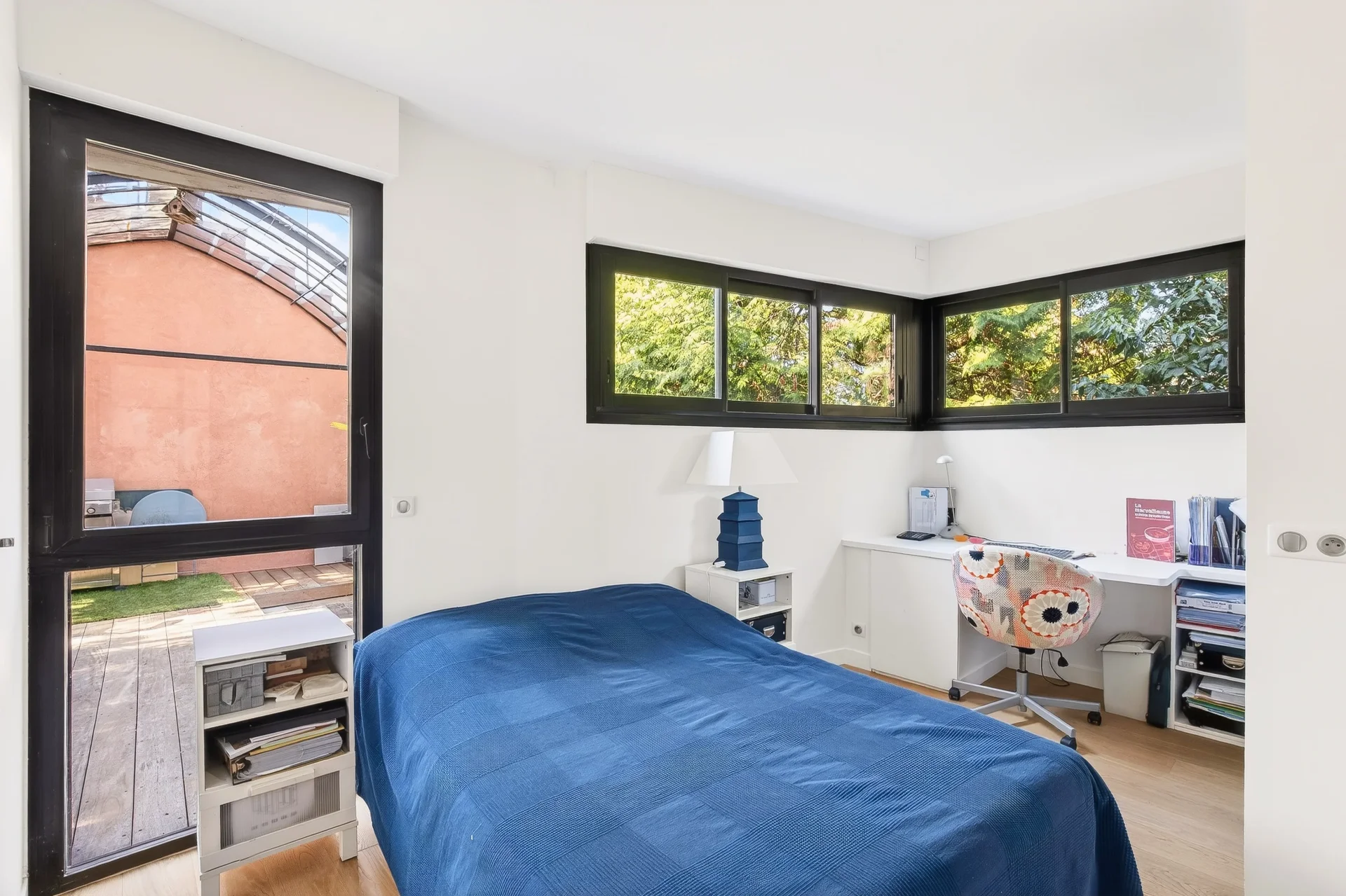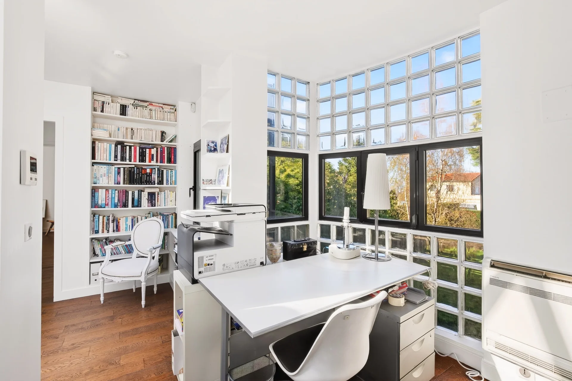 Nichée au fond d’une impasse privée et sécurisée, cette élégante maison d’architecte, en parfait état, développe une surface de 262 m² répartie sur deux niveaux, complétée par un vaste sous-sol. Elle est édifiée sur une parcelle paysagée de 732 m².