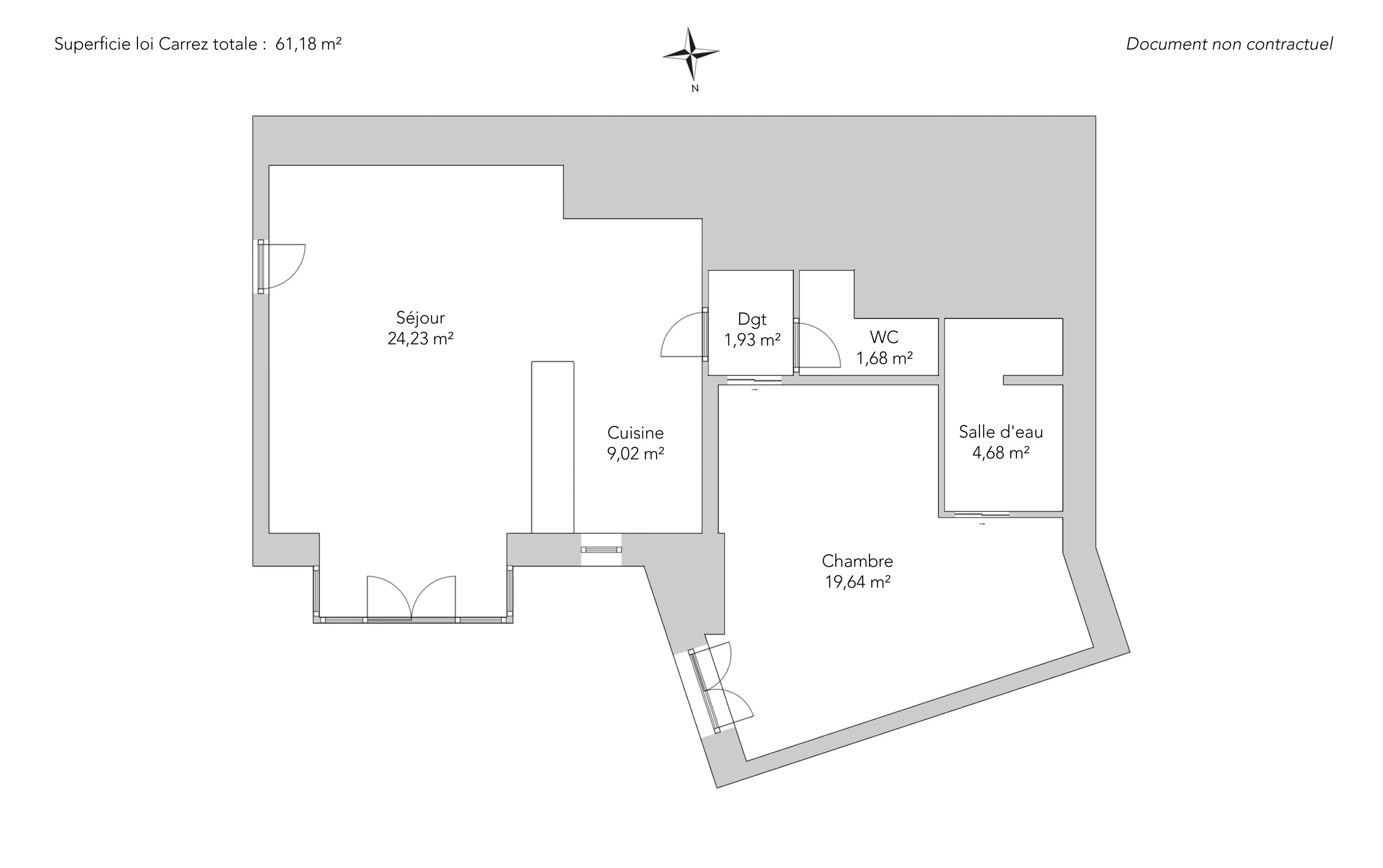 - Habitable : 61,18 m²