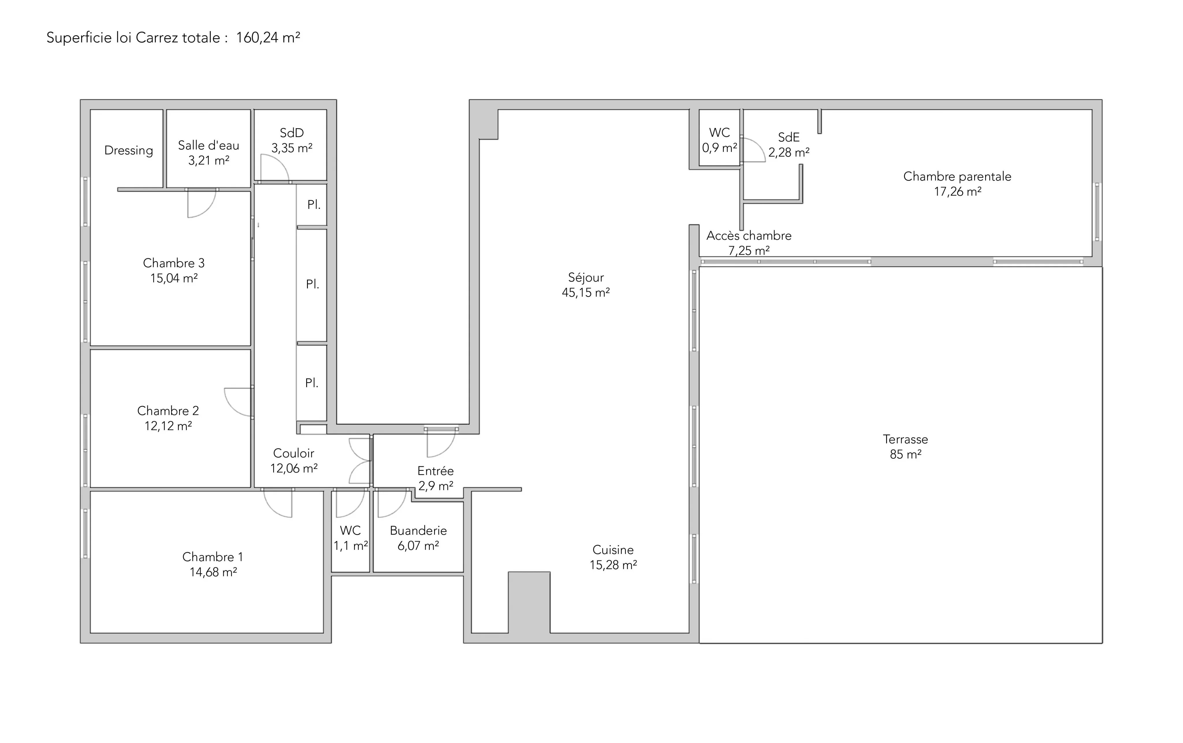 Au sein d’une copropriété de standing bien entretenue, au 1er étage avec ascenseur, découvrez ce bel appartement traversant de 160,24 m² loi Carrez, bénéficiant d’une superbe terrasse de 85 m².