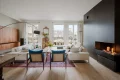 L’entrée s’ouvre sur une magnifique réception traversante de 66,35 m², prolongée par un balcon, offrant une agréable vue dégagée. Le salon, élégant et convivial, est doté d’une cheminée contemporaine et d’un espace home cinéma.