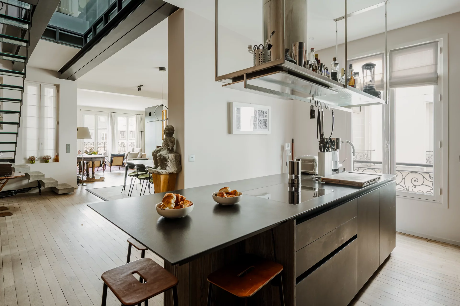 Idéalement situé dans le très recherché quartier de Sèvres–Babylone, ce superbe duplex à l’esprit résolument contemporain se déploie aux 5ᵉ et 6ᵉ étages avec ascenseur d’un immeuble de standing.