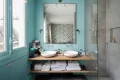 Un escalier en verre et acier, véritable élément architectural, mène à l’étage supérieur, où se trouvent deux chambres, chacune bénéficiant d’un couchage en mezzanine et de sa salle de douche privative.
