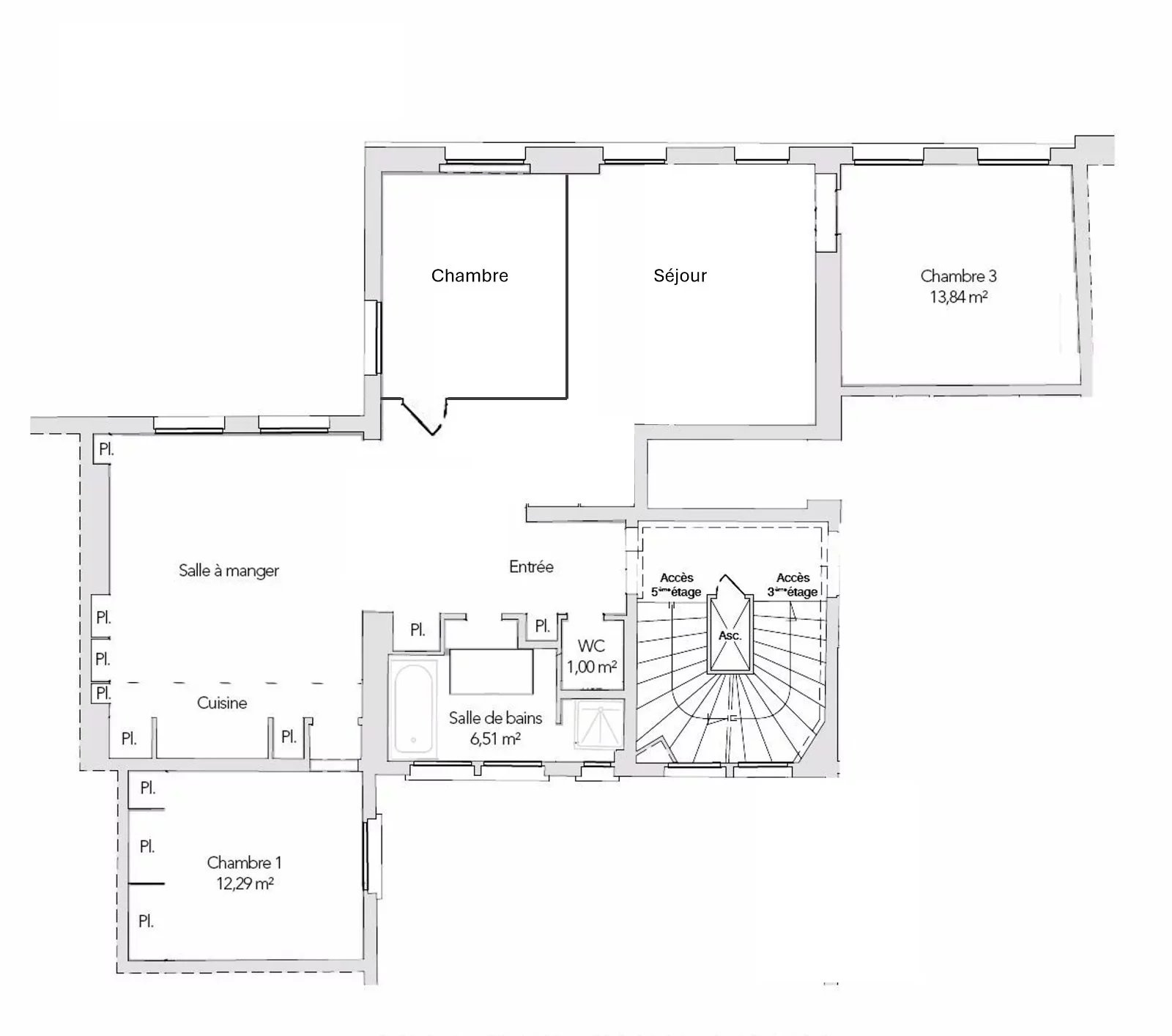 A proximité de la rue des Martyrs, au sein d'un immeuble ancien très bien entretenu, élégant appartement de 97m².