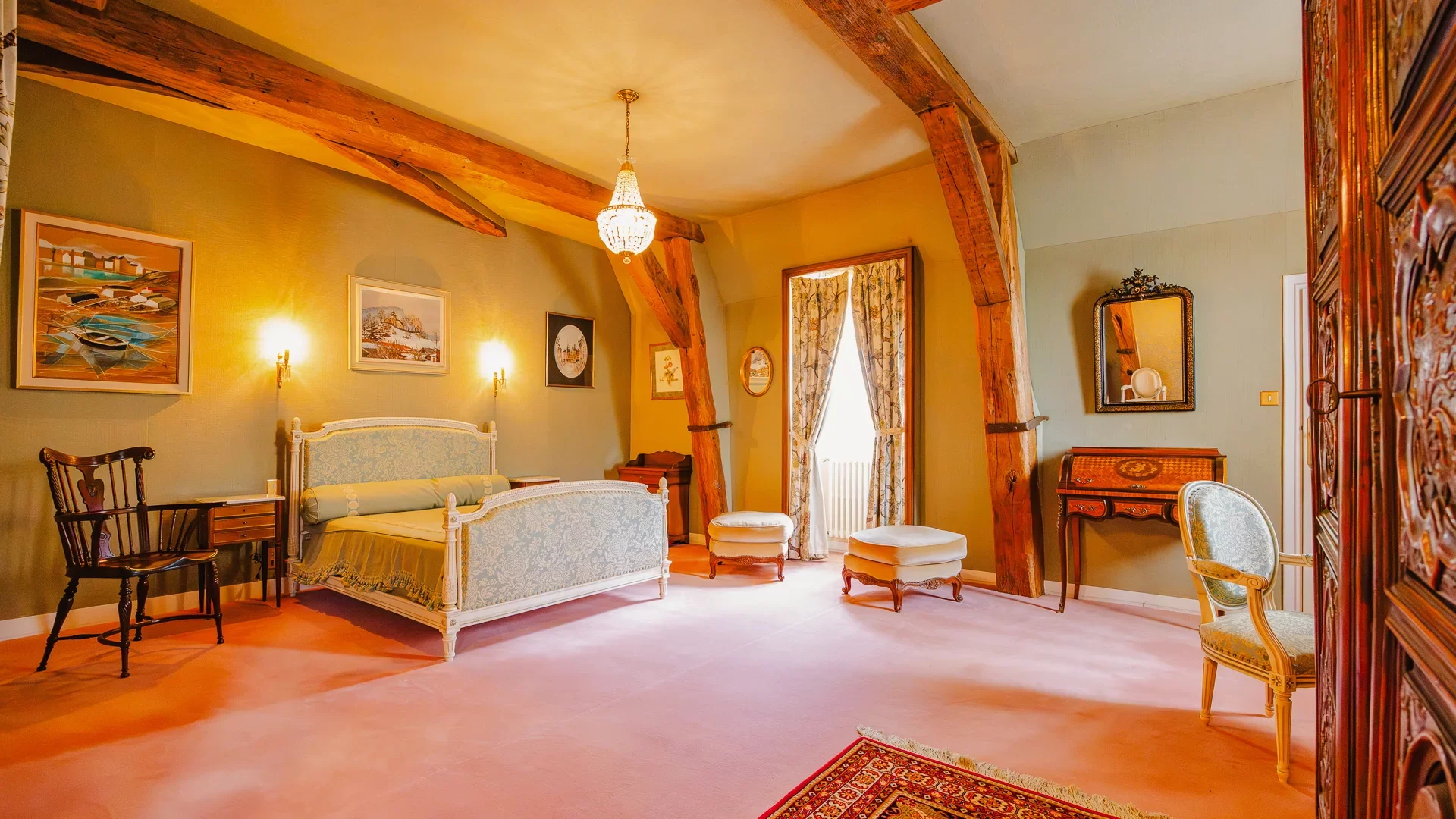 Le château développe plus de 663m² habitables, hors dépendances. Les volumes intérieurs conjuguent générosité et raffinement avec une superbe suite parentale d’environ 50m², cinq chambres supplémentaires dont la plupart disposent de leur salle de bains privative, ainsi que de vastes salles de réception atteignant près de 80m², idéales pour recevoir ou organiser des événements privés.