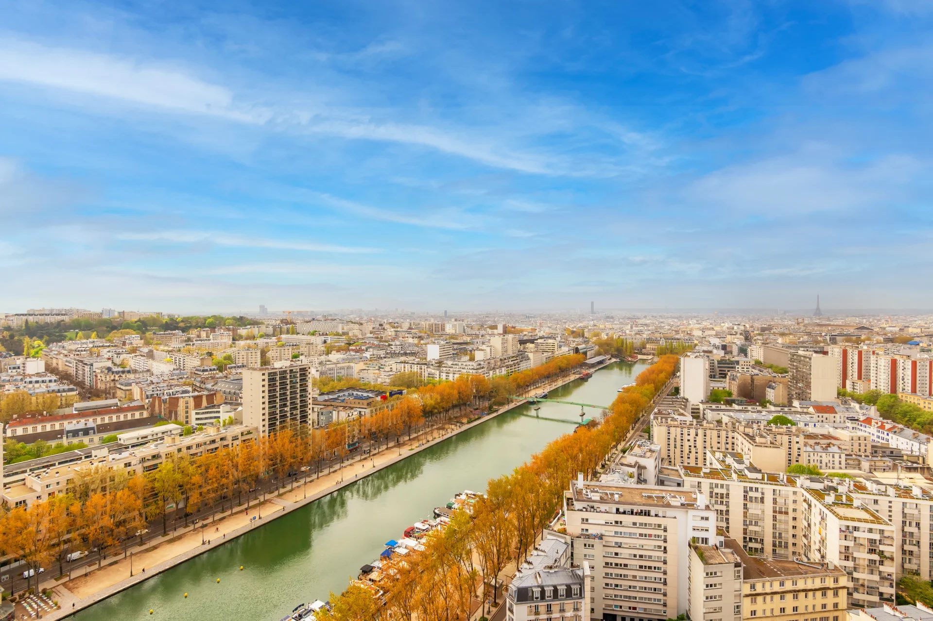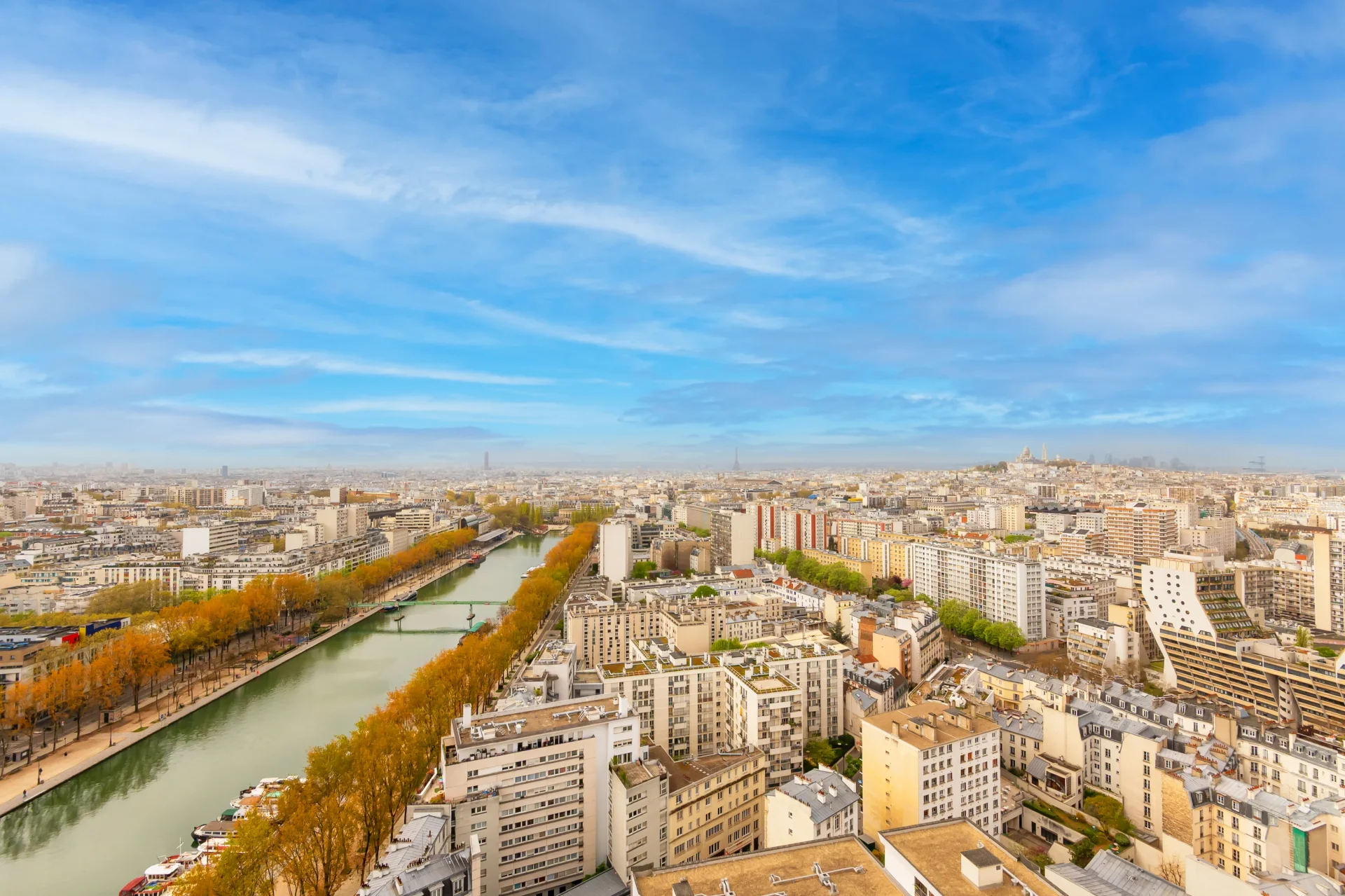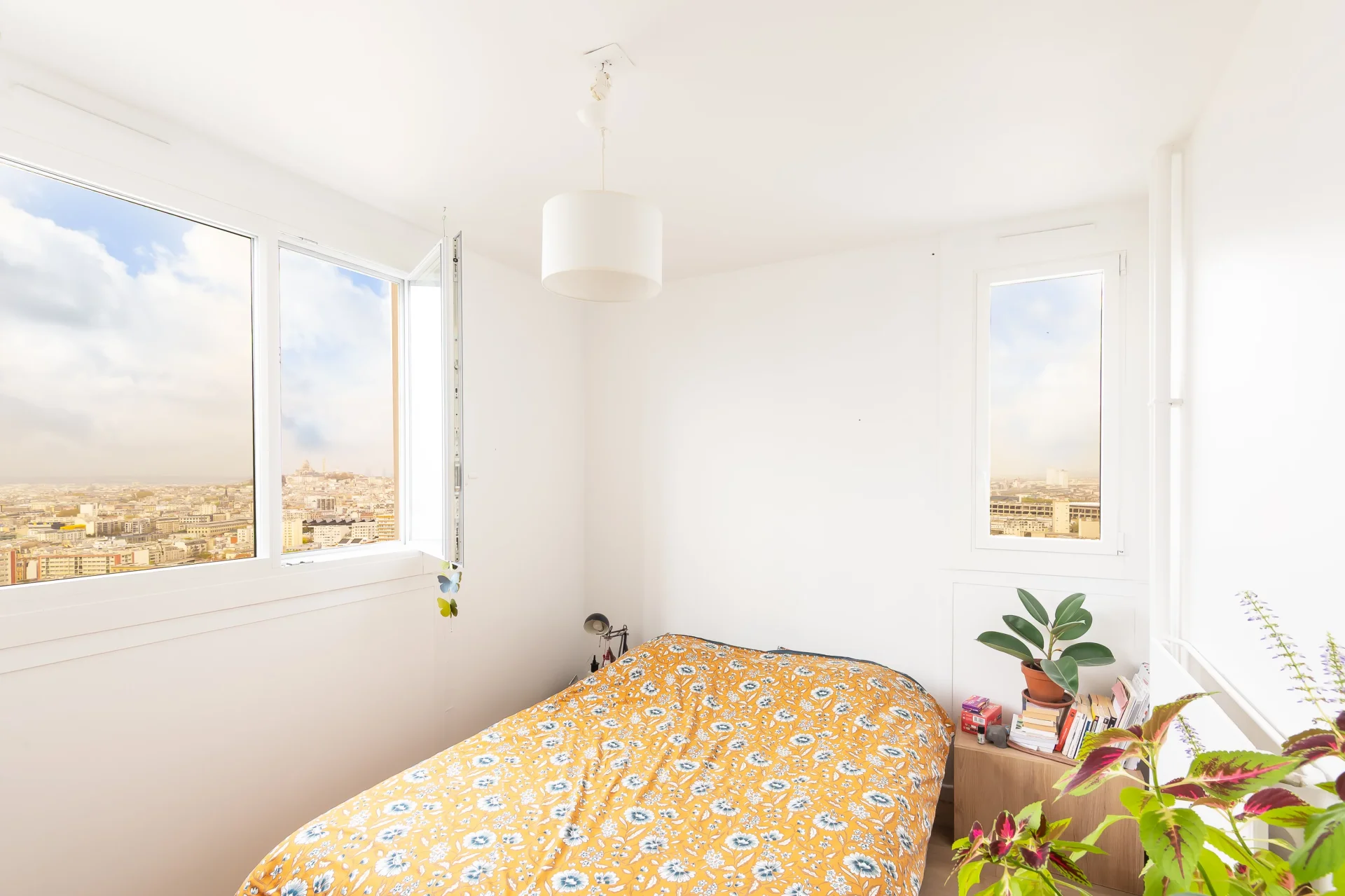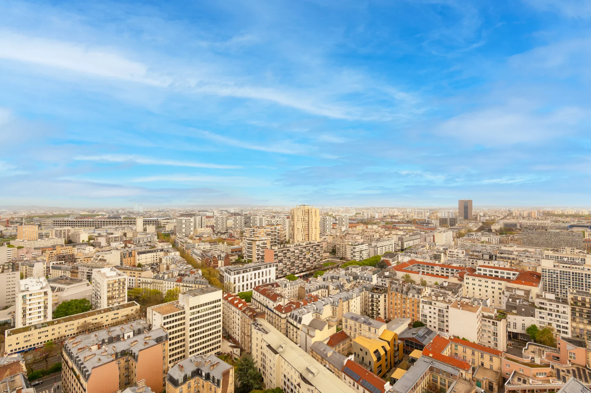 Perché au 28ème étage sur 30, cet appartement bénéficie d’une lumière exceptionnelle et d’une vue panoramique entièrement dégagée sur Paris, avec la Tour Eiffel, le Sacré-Cœur et tous les monuments emblématiques de la capitale en perspective.