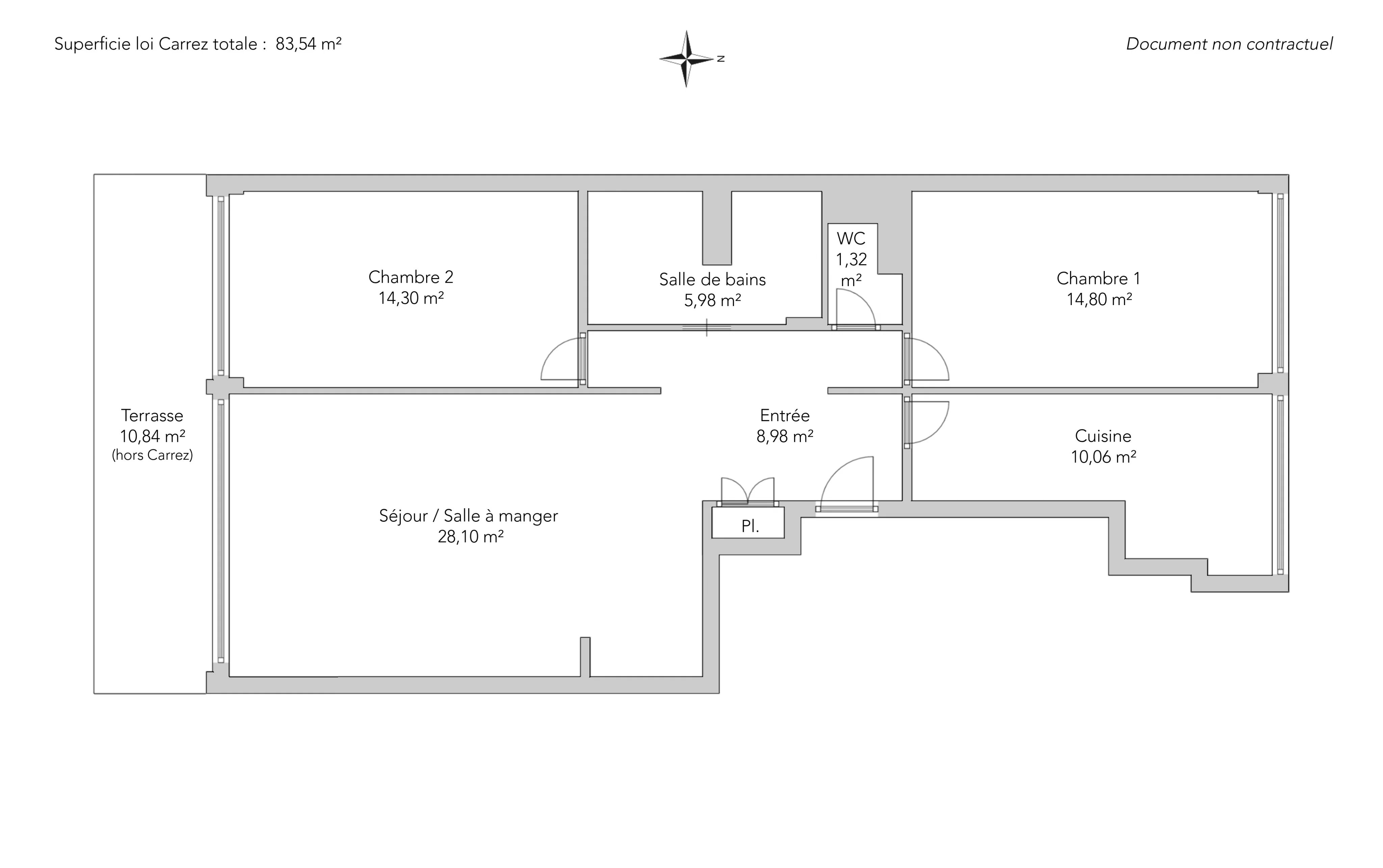 Baigné de lumière grâce à son exposition sud et son plan traversant sans perte de place, il se compose d'une entrée, d'un double séjour très lumineux donnant sur une terrasse de 10,84m², une cuisine équipée aménagée, une chambre parentale avec dressing donnant également sur la terrasse, une salle de bains et des toilettes séparés.