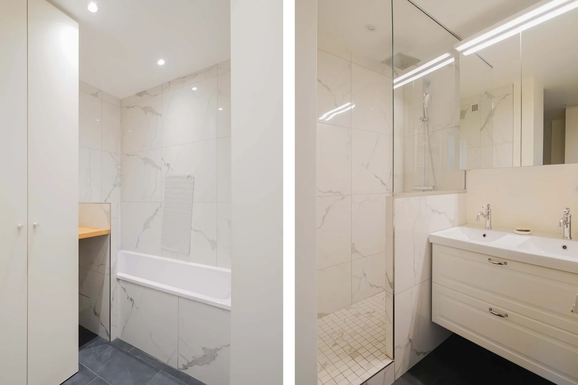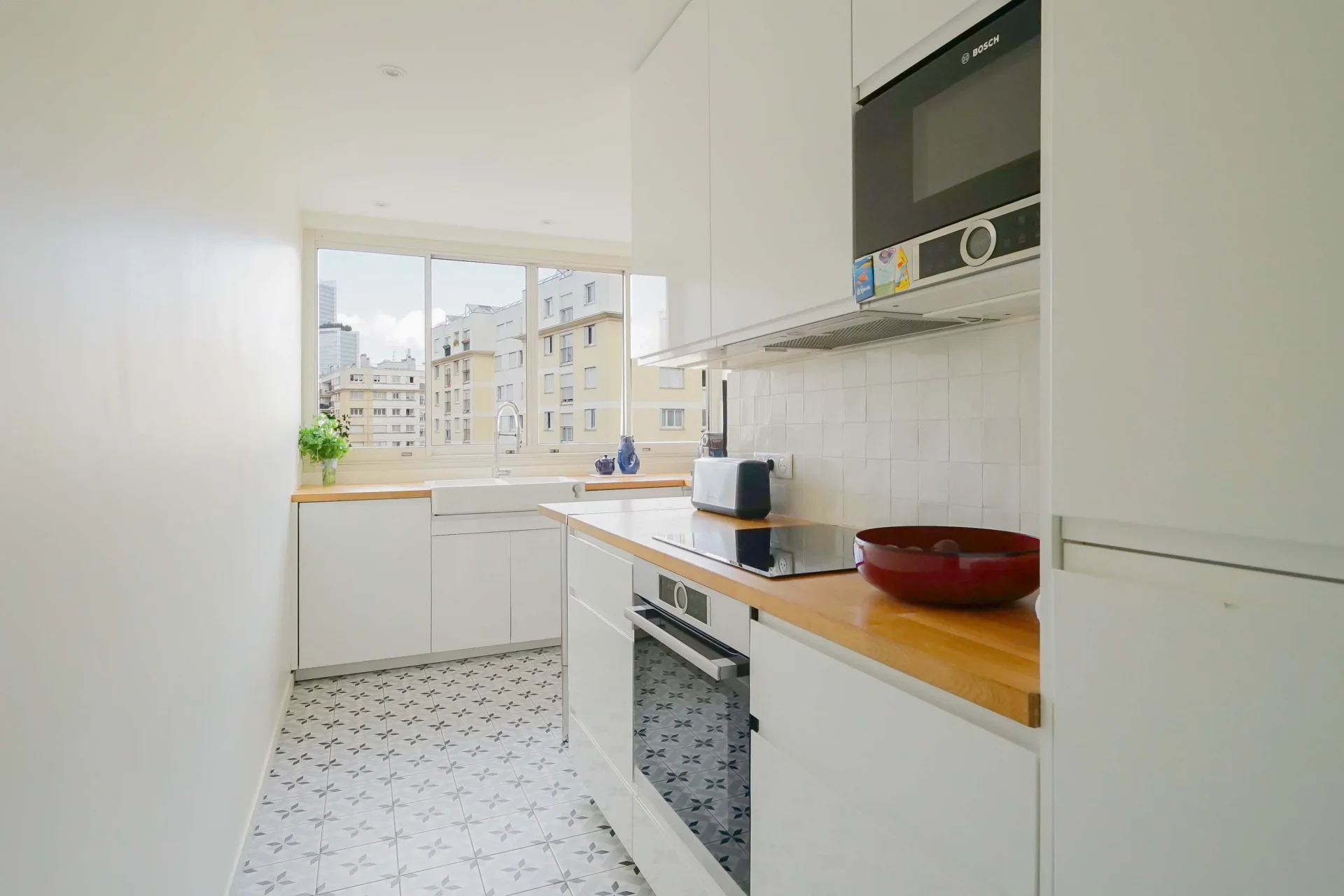 À proximité du métro pont Cardinet, dans une rue calme du XVIIe arrondissement, proche des écoles privées, charmant appartement refait à neuf de 83,54 m² loi Carrez au sixième étage par ascenseur d'un immeuble récent avec gardien à demeure.