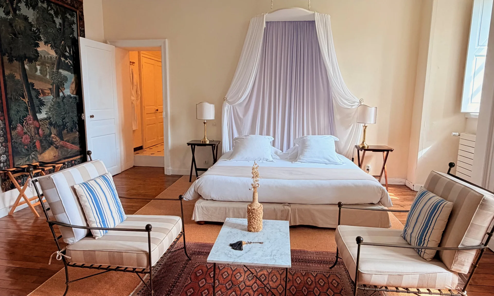 Les étages accueillent 11 suites, chacune disposant de sa salle d’eau ou salle de bains, offrant confort, intimité et raffinement.