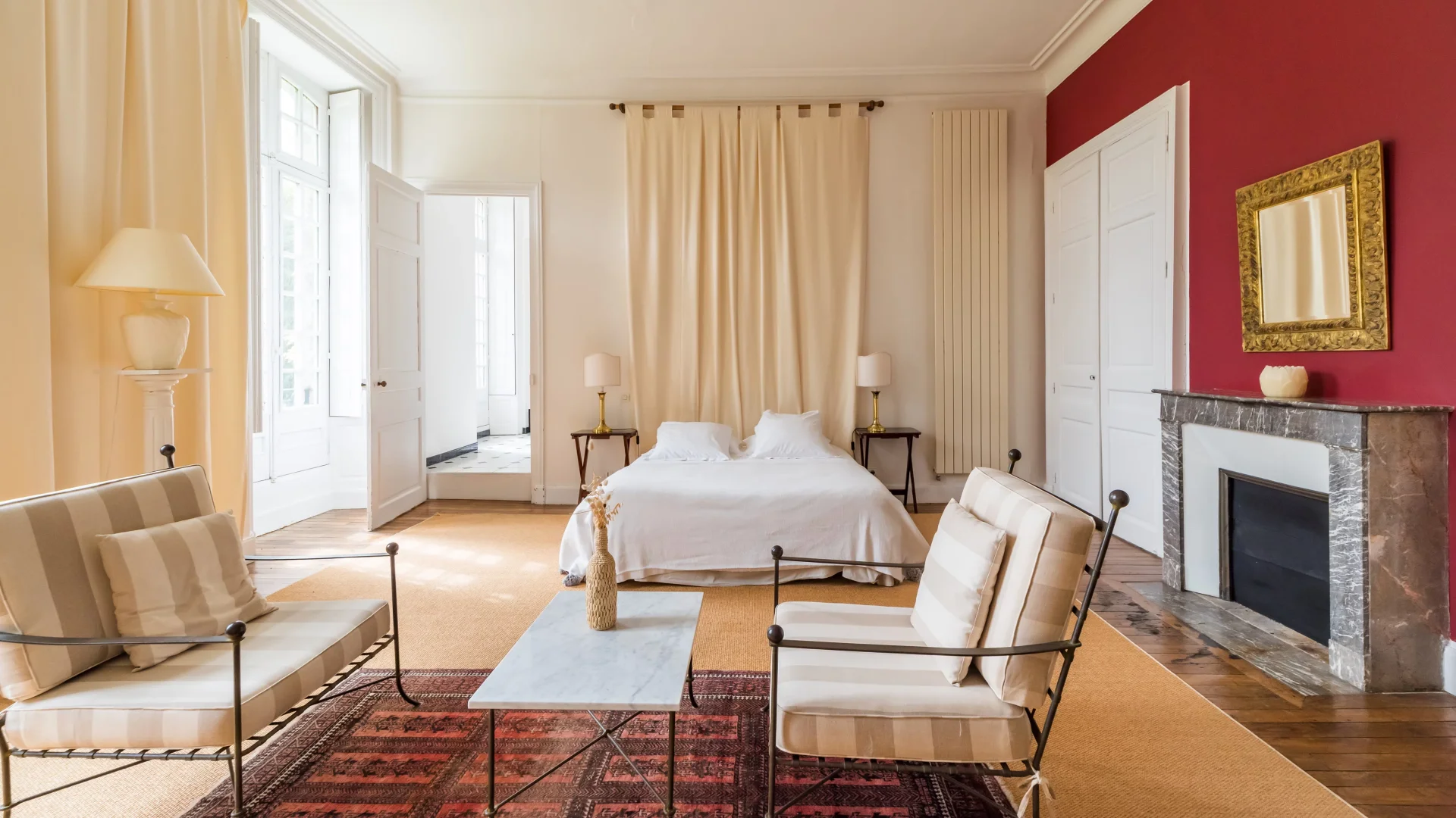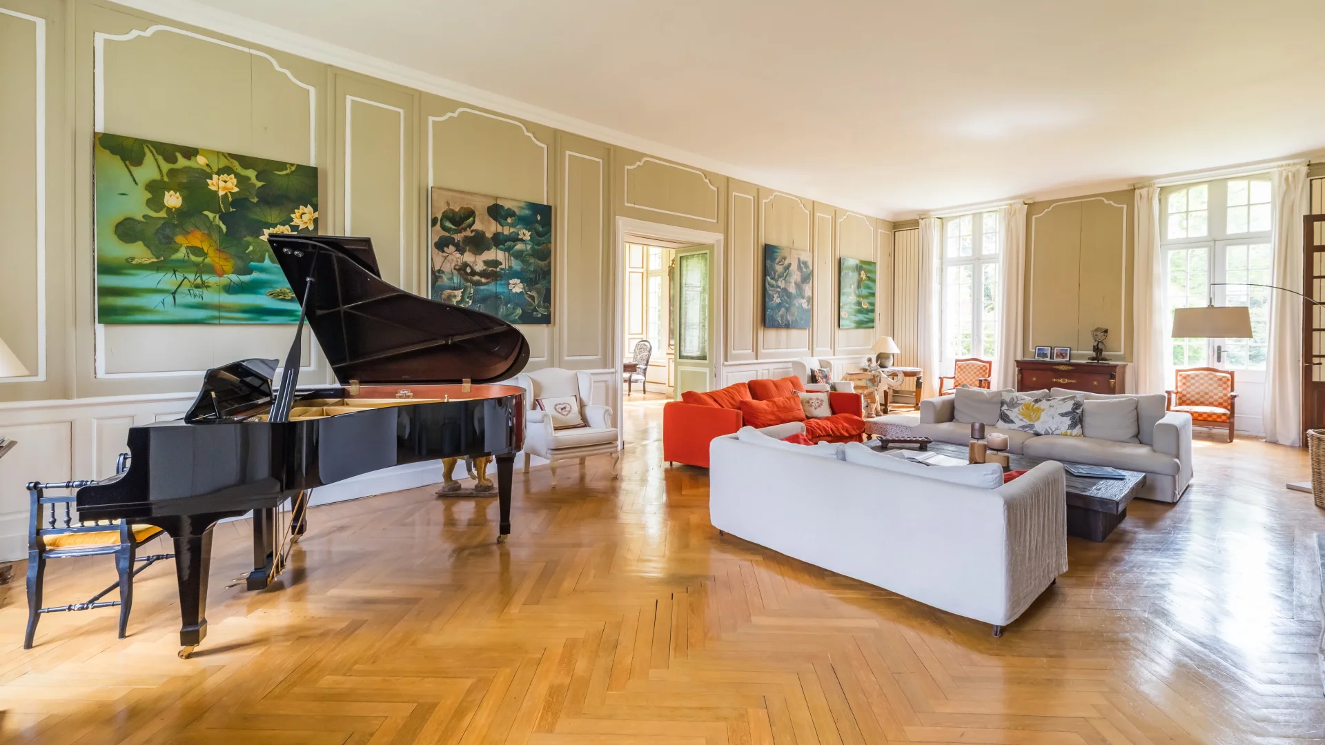Les salons, baignés de lumière, s’organisent en une enfilade harmonieuse :