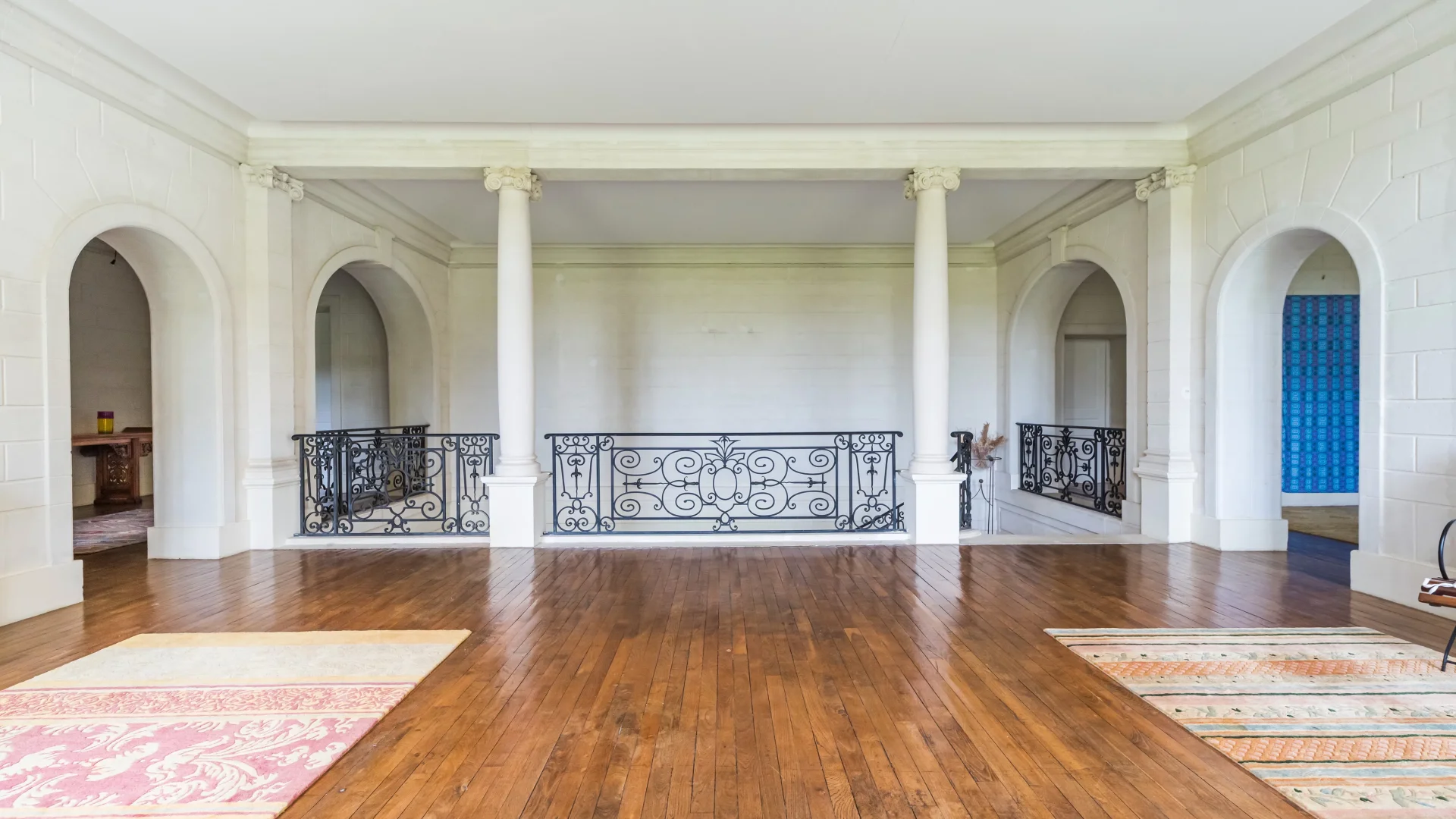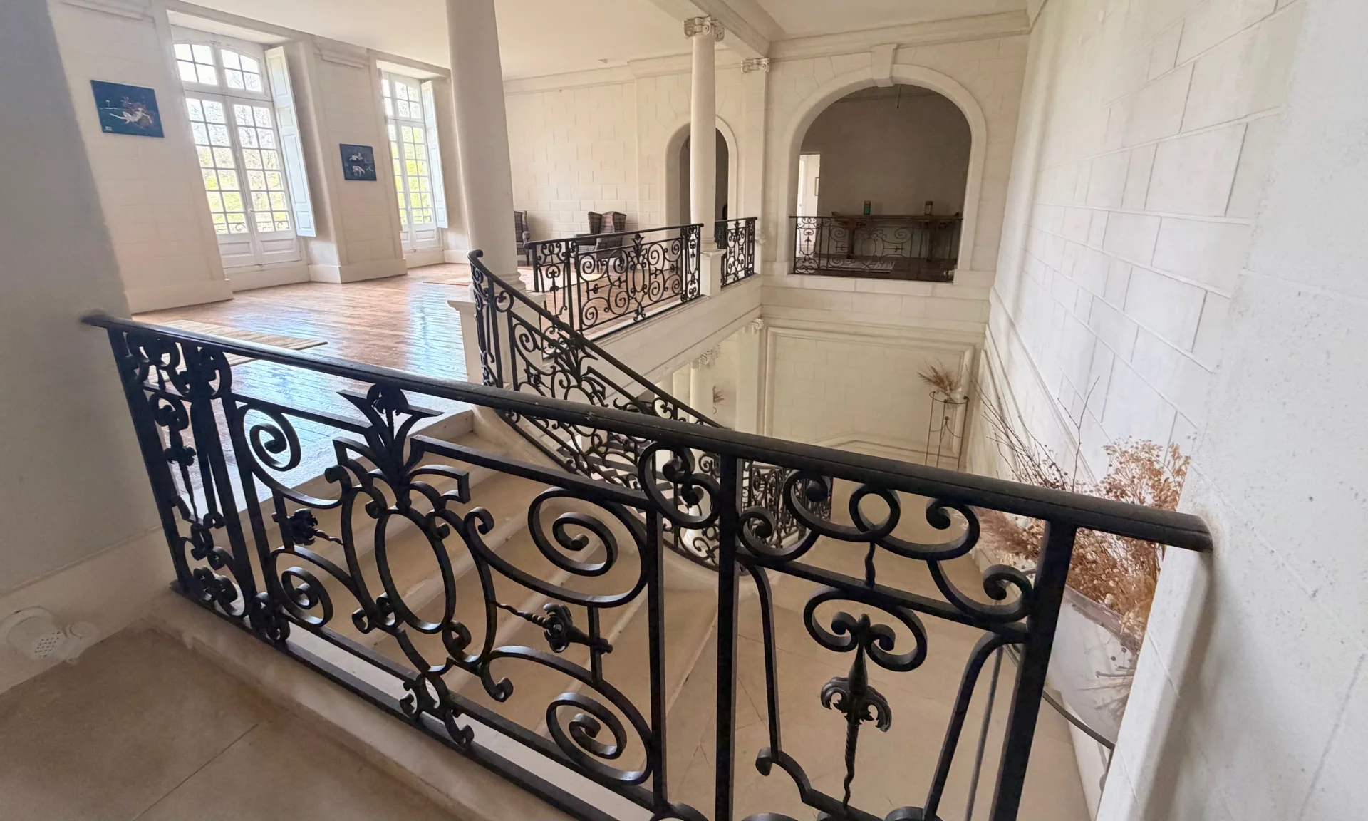 Dès l’entrée, la propriété affirme sa présence. Le hall d’honneur, animé par un escalier magistral aux ferronneries d’art, ouvre sur des espaces de réception généreux, pensés pour accueillir avec élégance sans jamais perdre en convivialité.